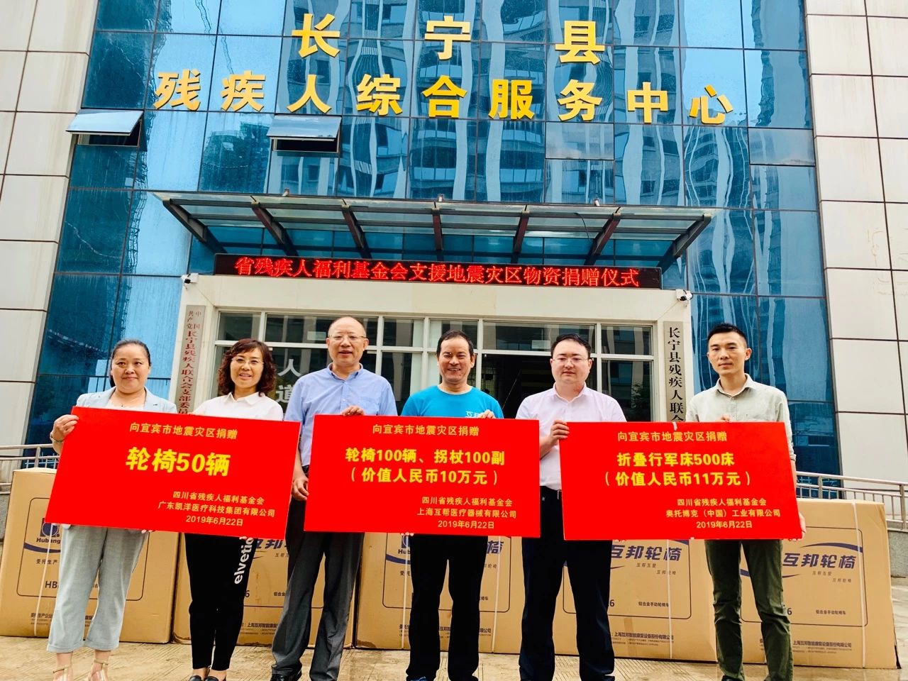 2019年6月21日,互邦董事長(cháng)賀金銘與四川省殘疾人聯(lián)合會(huì )理事楊生明共同簽署,為四川宜賓地震災區捐獻康復器具。