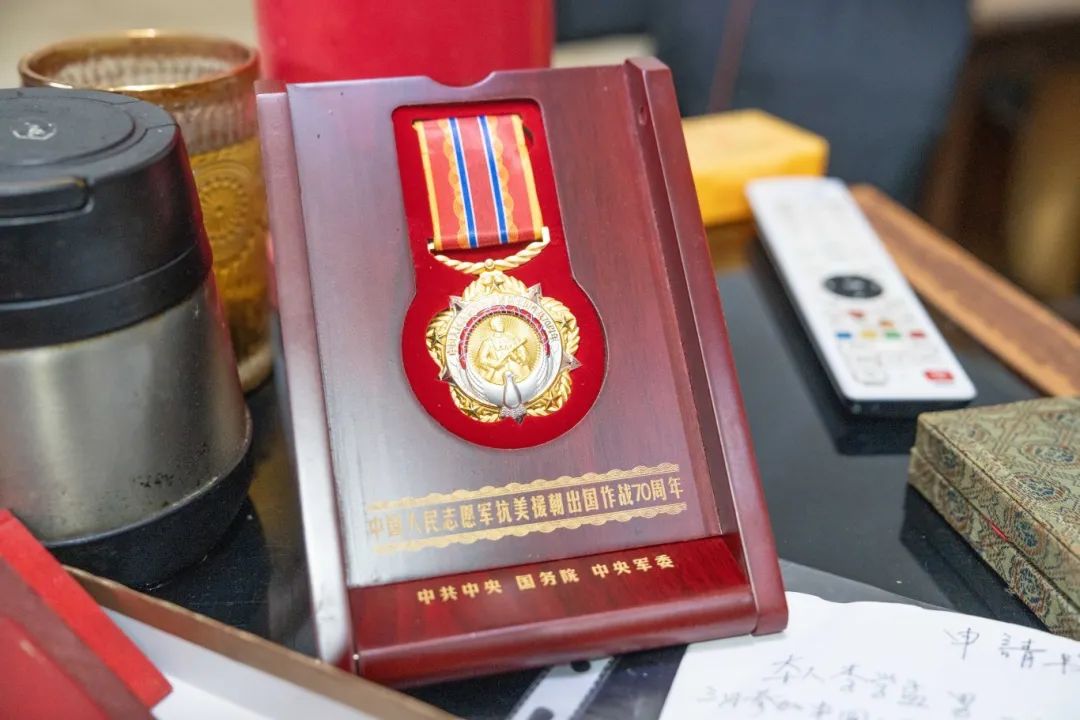 老爺爺的老伴向我們展示了他的榮譽(yù)勛章和一些資料,其中有中國人民志愿軍抗美援朝出國作戰70周年紀念章,由中共中央、國務(wù)院、中央軍委聯(lián)合頒發(fā)。從老奶奶展示的資料中我們了解到老爺爺是1939年11月21日出生,在1956年3月參加中國人民志愿軍到朝鮮,部隊是297部隊13小隊,部隊所在地是朝鮮大陽(yáng)里,戰爭結束后轉入中國人民解放軍沈陽(yáng)部隊,部隊番號是0854部隊,部隊所在地是沈陽(yáng)。老爺爺在朝鮮大陽(yáng)里,隨部隊參加了朝鮮戰爭,完成了運輸武器、彈藥等工作,回國后隨沈陽(yáng)部隊參加了保衛祖國的重要任務(wù)。
